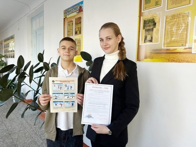 школе № 13 проведена познавательная беседа «Зима прекрасна, когда безопасна!». Советник директора Капральченко Мария и социальный педагог Удотова Светлана