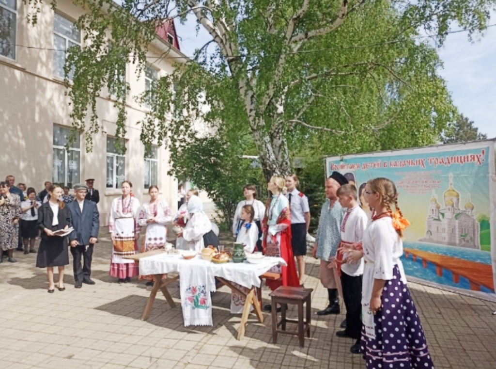 школьном дворе обучающиеся организовали казачью сценку на кубанском говоре. На