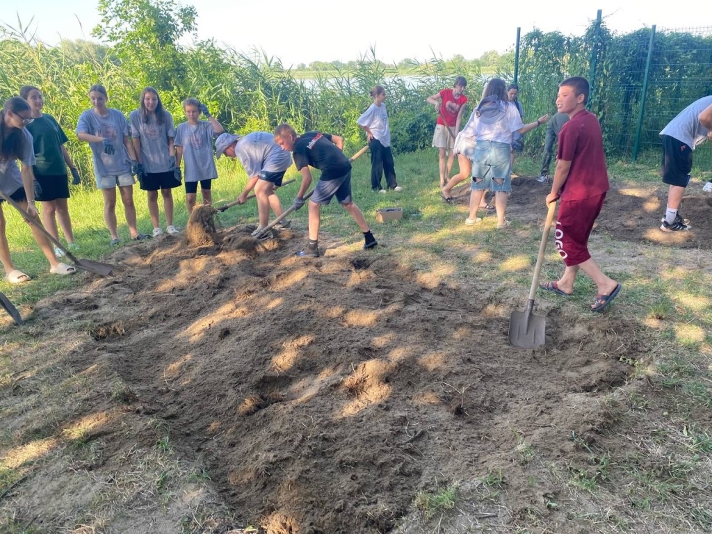 ребята переместились на поле и, сделав небольшую лунку, отобрали почву с