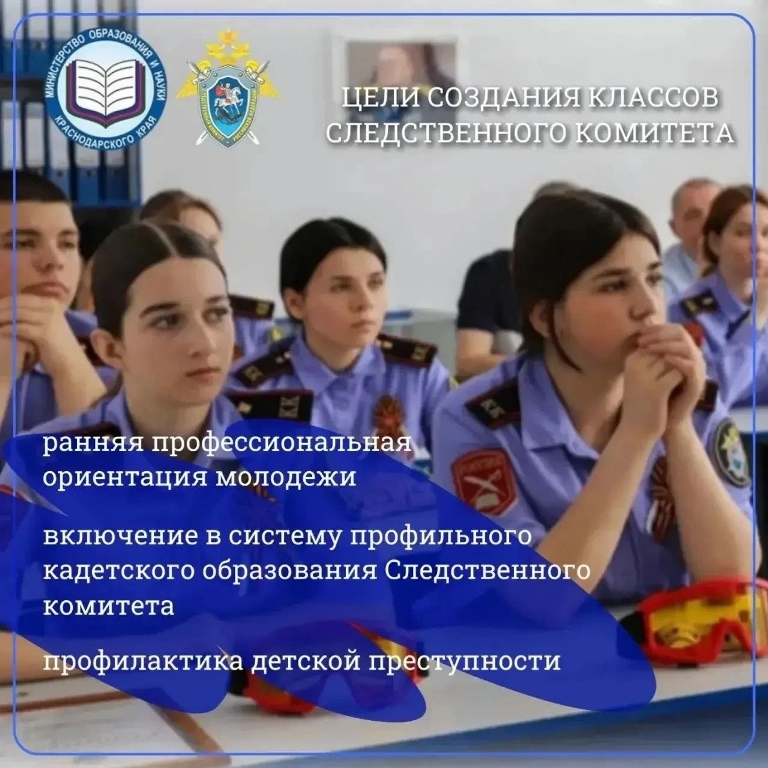 С 1 сентября 2026 года планируется открытие кадетских классов Следственного комитета в девяти муниципальных образованиях края.