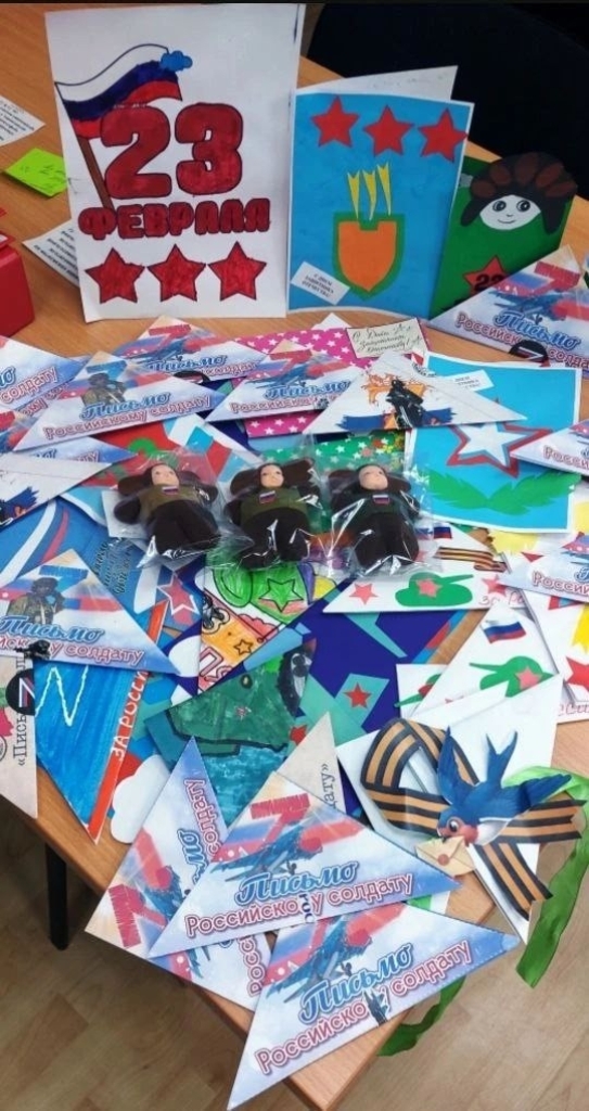 В рамках муниципальной военно-патриотической акции Акции «100 дней до Победы» сотрудники, школьники и воспитанники образовательных организаций, сотрудники управления образованием провели акцию по сбору писем, открыток, рисунков, поделок для бойцов специальной военной операции.