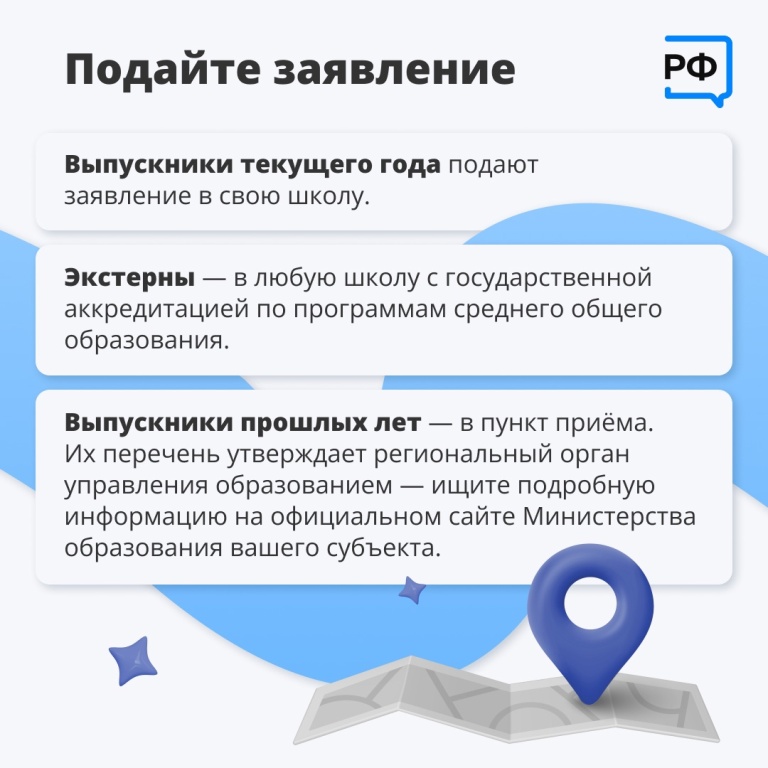 школе. Экстерны – в ближайшую школу с государственной аккредитацией. Выпускники прошлых лет – в места регистрации clck.ru/3FjZDZ -Как подать заявление? Лично на основании документа, удостоверяющего