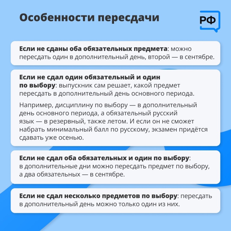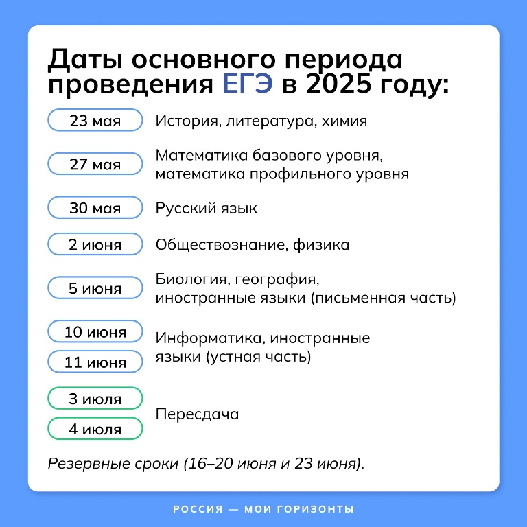 Резервные дни для сдачи экзаменов предусмотрены с 16 по 23 июня, а пересдача